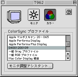 例:ちなみに私のMACはNANAOのT962モニタ色温度6500kなので T962の6500KのICCを使用しております。
